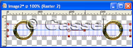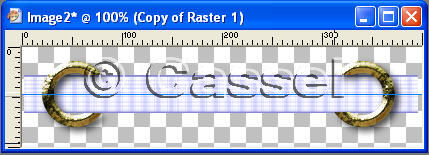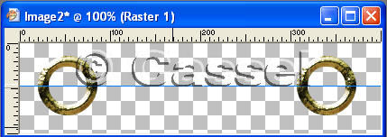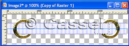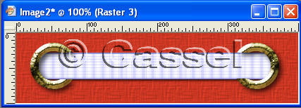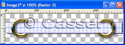 5- Avec l’outil de sélection, tracez un rectangle pour « couper » votre oeillet pour qu’il semble passer dessous. |
